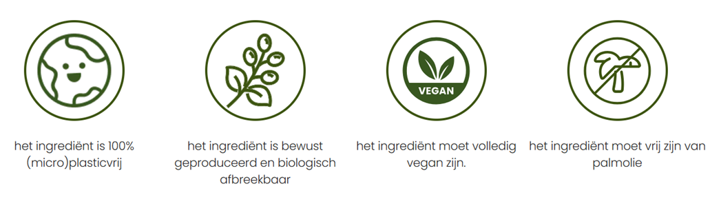 Door onze HappySoaps zélf met de hand in Nederland te maken, weten we precies wat er in de Bars gaat. Op die manier kunnen we zorgvuldig de fijnste ingrediënten selecteren. Deze natuurlijke ingrediënten zijn veilig voor jou, je familie, de dieren en onze planeet. Ieder ingrediënt dat in onze producten gaat, moet aan deze vier criteria voldoen (zie afbeeldingen)
